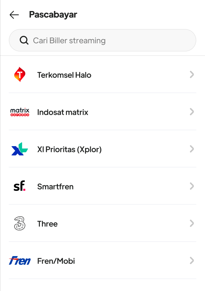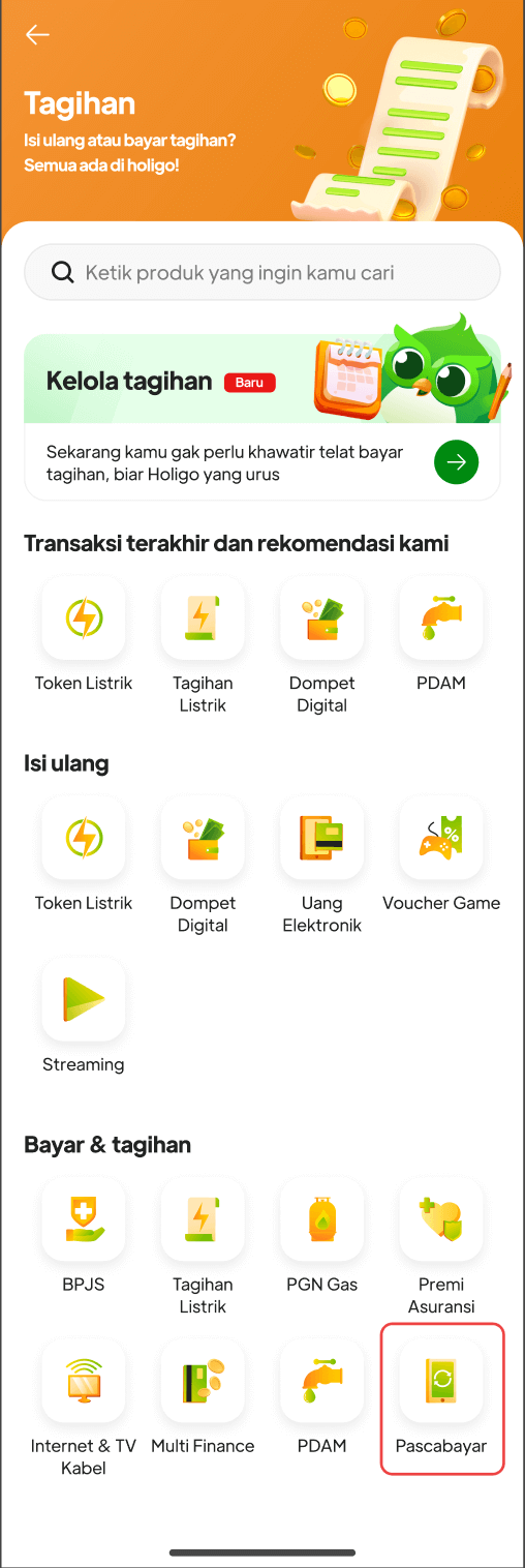 3. Cari biller Pascabayar dan klik