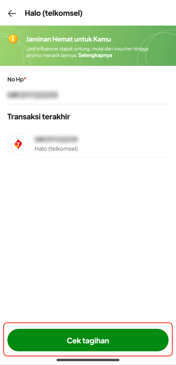 4. Masukkan Nomor Pelanggan atau nomor Handphone klik Cek tagihan